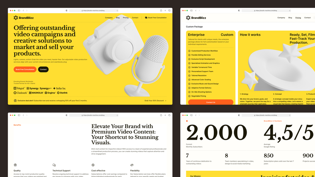 Brandblizz unleashes boundless creativity in your marketing endeavors. Offering 42 versatile, fully responsive modules, coupled with an intuitive CMS and a well structured layout, empower yourself to create original and captivating content that resonates with your audience.